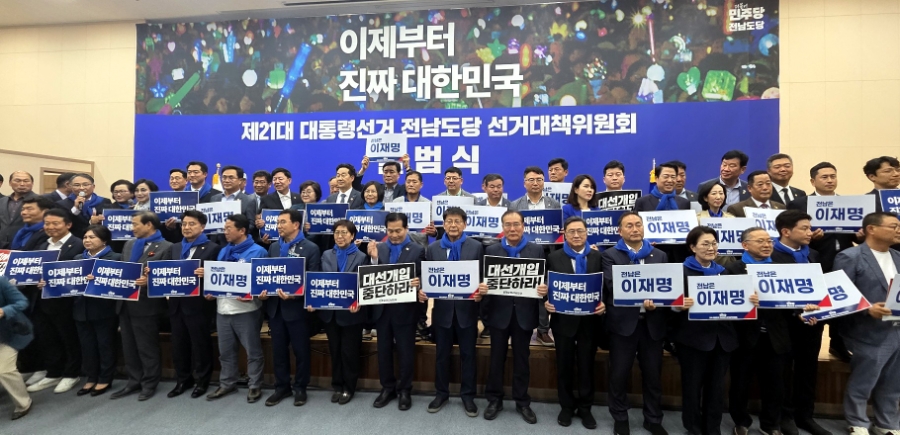 21대 대선 민주당 전남도당 선대위 출범식 ❍···제21대 대선 민주당 전남도당 선대위 출범식에서 “이재명을 지키는게 대한민국을 구하는 길”이라며 “우리는 반드시 이긴다. 이재명의 승리가 대한민국의 승리”라고 대선 필승을 다짐 ❍···민주당 중앙선대위 꿈사니즘위원장을 맡은 이개호 의원은 “나라가 어려울때 언제나 호남이 나라를 구했다. 민주당이 어려울때도 전남이 민주당을 지켰다”고 전남이 이재명 승리에 앞장설 것을 당부 ❍···또한 “내란잔당과 기득권세력들이…